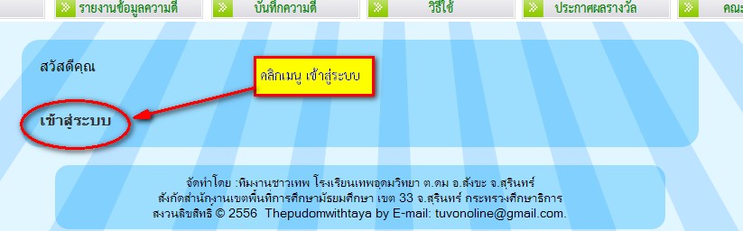 ขั้นตอนที่ 3 คลิกเมนูเข้าสู่ระบบบันทึกความดีออนไลน์