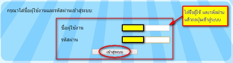 ขั้นตอนที่ 2 ใส่ชื่อผู้ใช้และรหัสผ่าน แล้วกดปุ่มเข้าสู่ระบบ