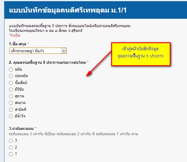 ขั้นตอนที่ 5 บันทึกคุณธรรมพื้นฐาน 8 ประการออนไลน์แต่ละคน